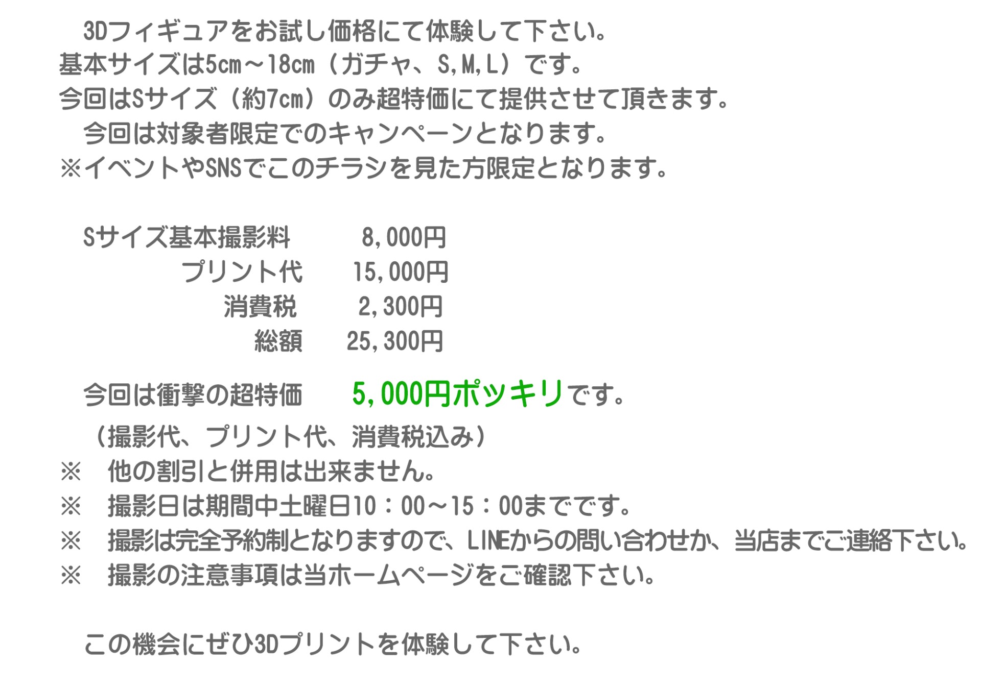 イベントやSNSでこのチラシを見た方限定特価です。